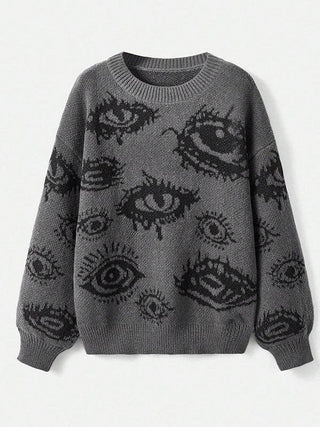 Sheer Trend Long Sleeves Loose Contrast Color Geometric Split-Joint Round-Neck Pullovers Sweater Tops