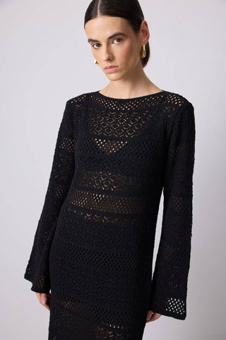 Touché Boho Cotton Knit Maxi Dress with Flared Sleeves