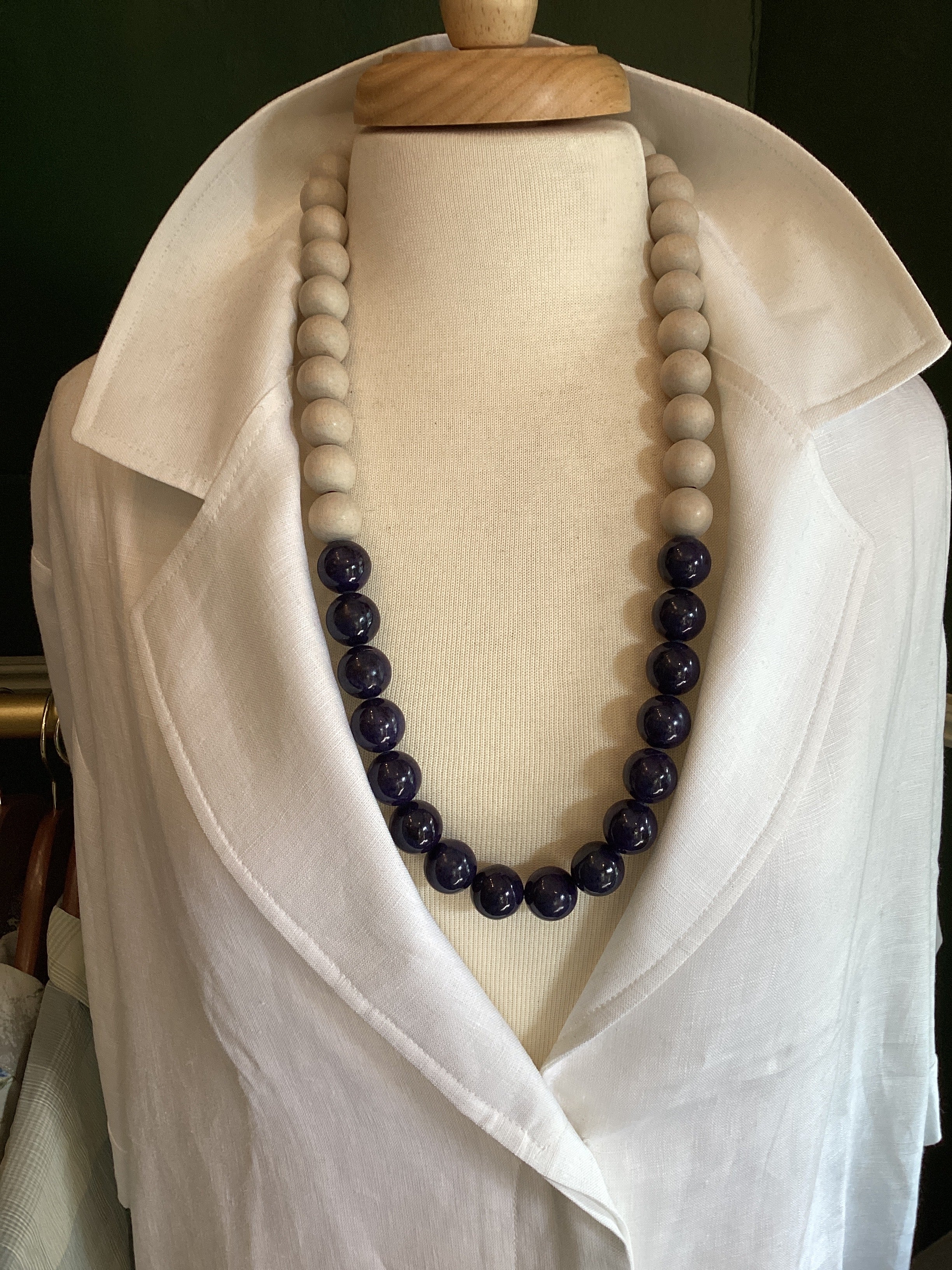 Gavel wood and navy limestone necklace